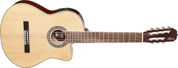 Violão clássico cutaway eletroacústico com tampo sólido de Abeto Engelmann